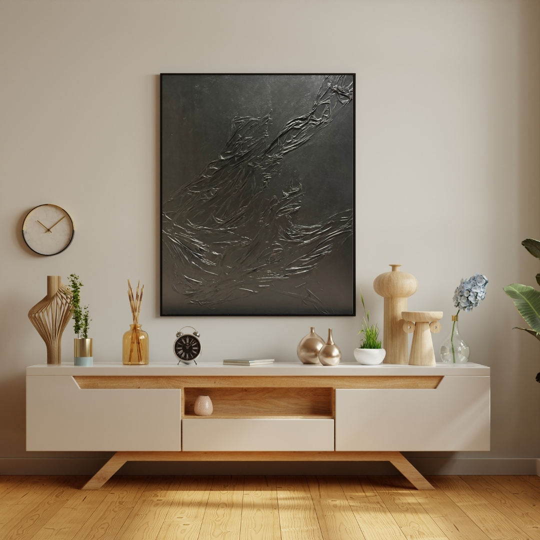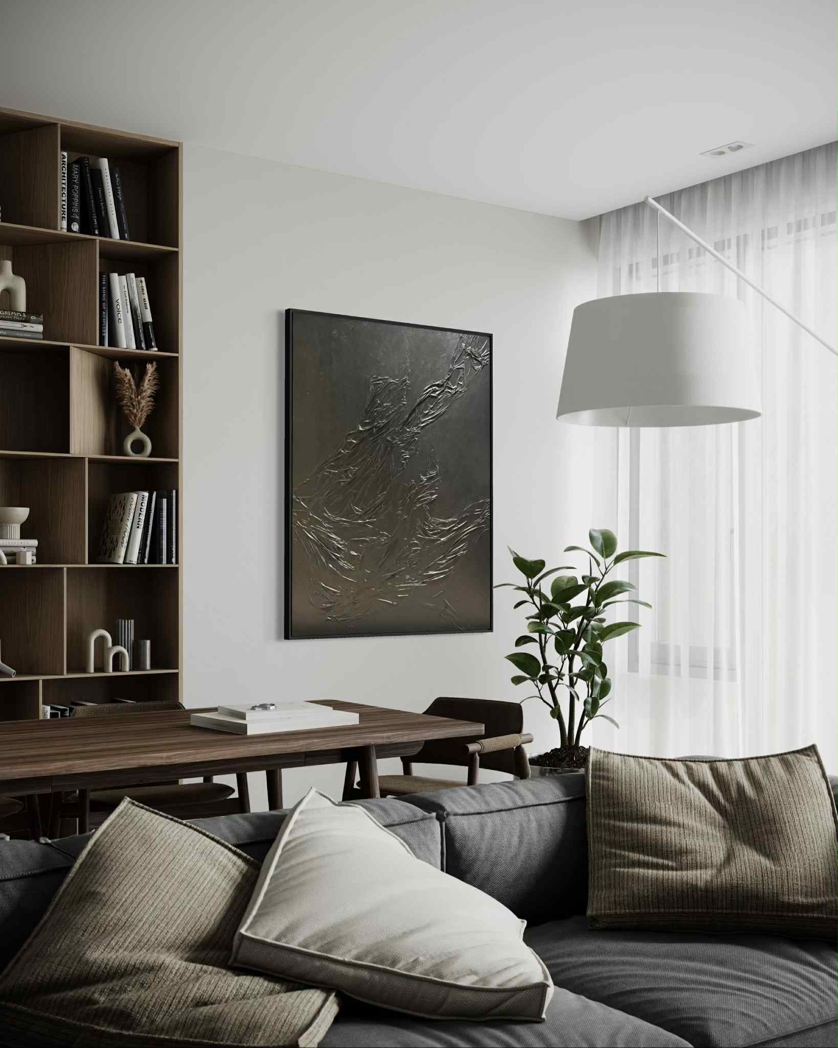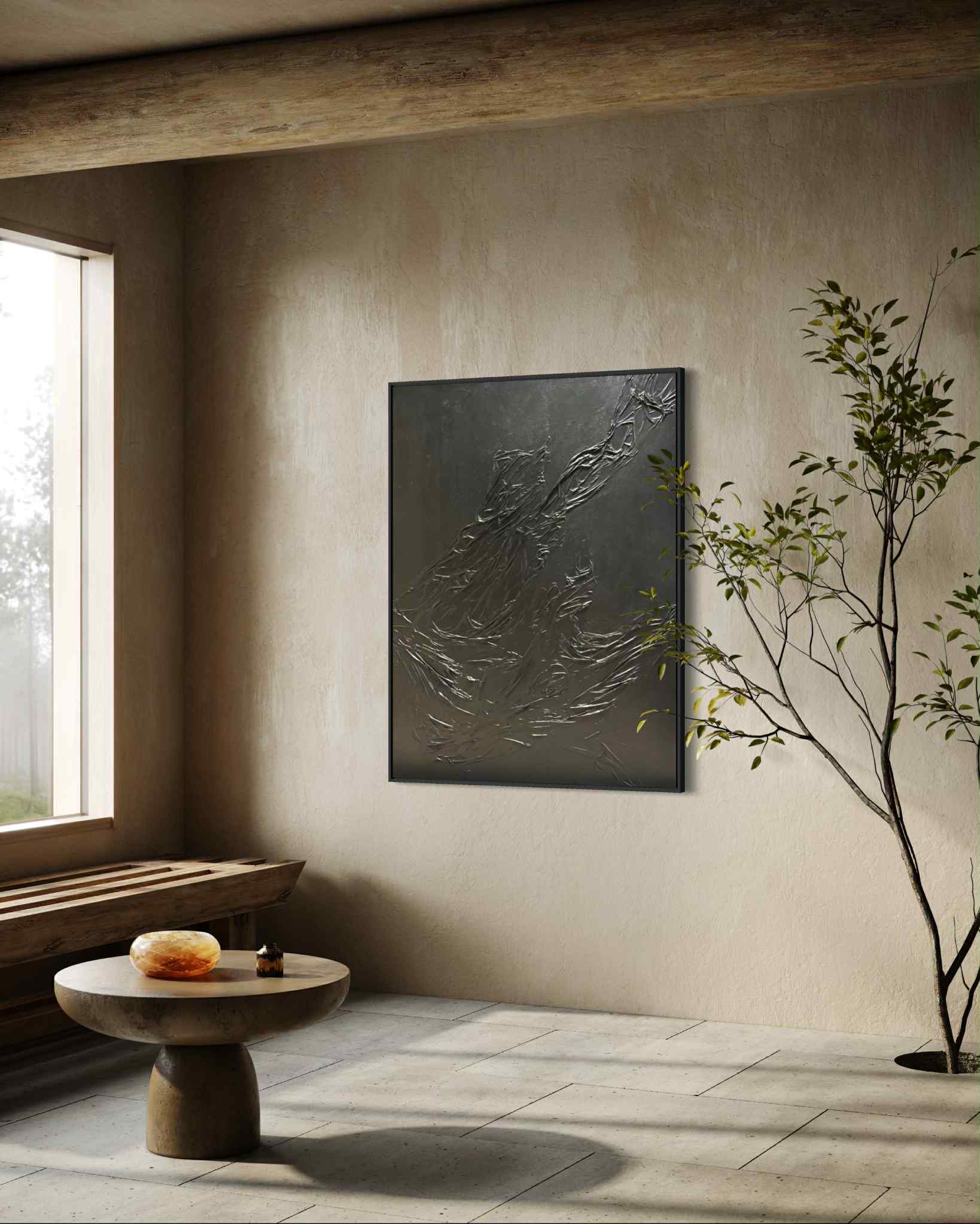 Minimalistyczny w kolorze, bogaty w strukturę obraz . Delikatny, subtelny, ale i tajemniczy.
